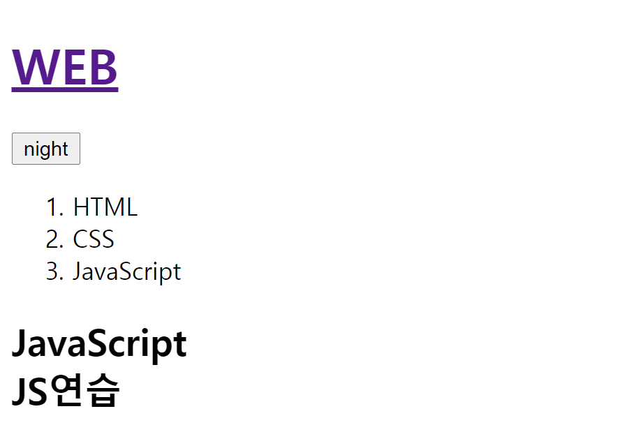 다시 button을 누르게 되면, 이번엔 if (document.querySelector('#night_day').value === 'night')의